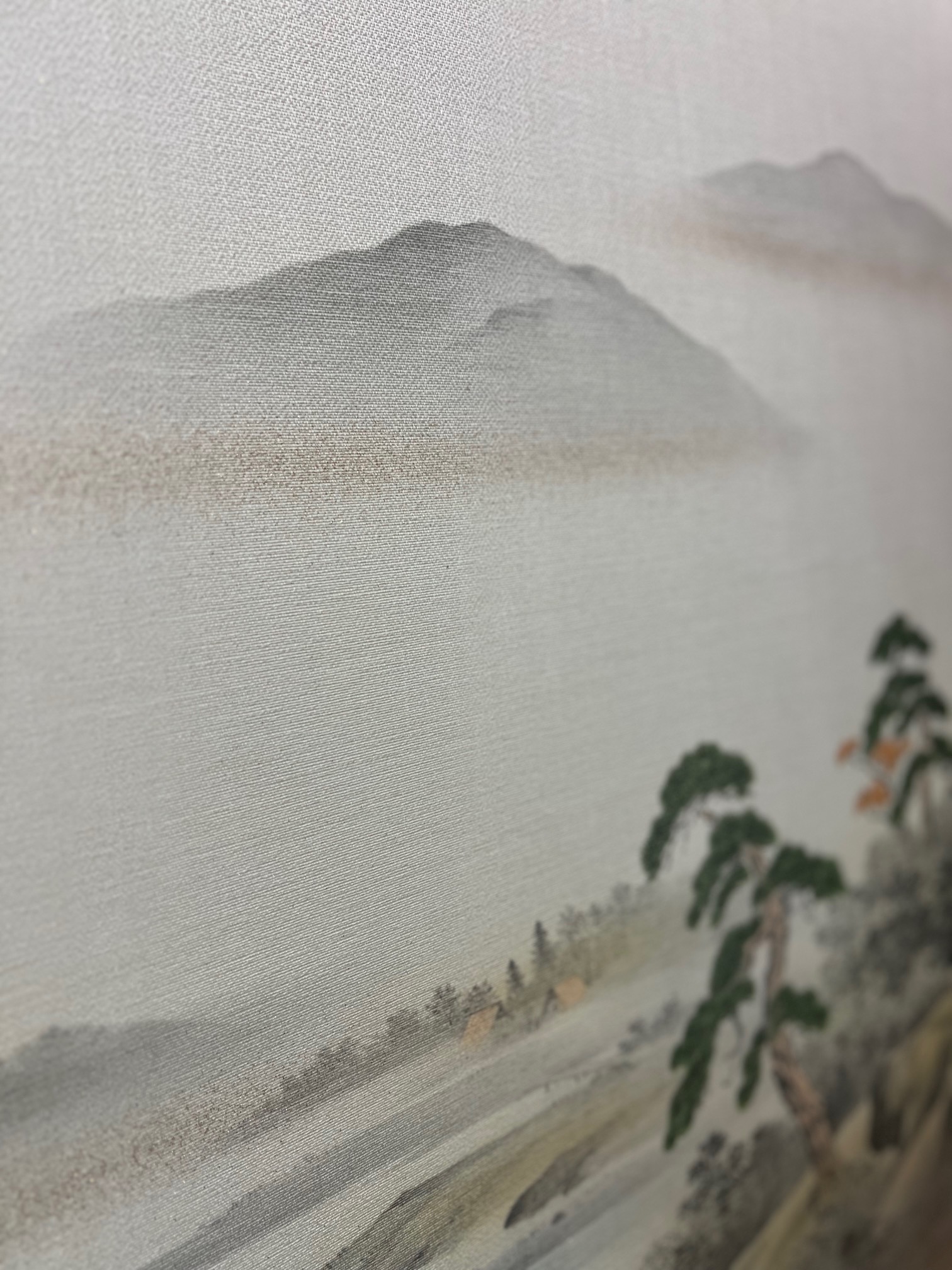 2枚柄の山水画をイメージした模様の織物生地です。